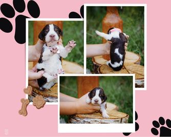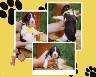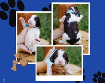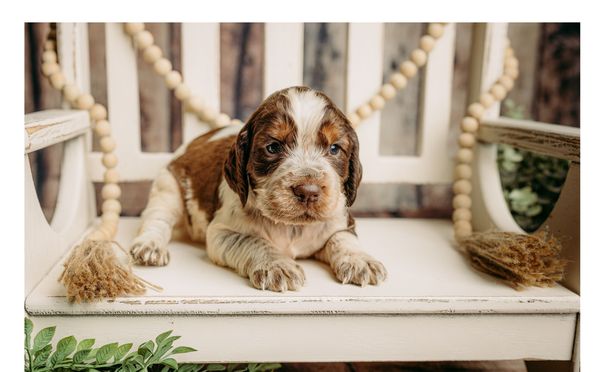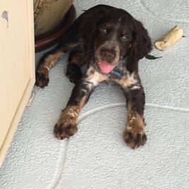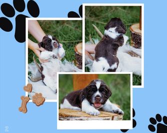 Spradley Springers kept us well informed with pictures and video on the progress of our new puppy "Snickers" until we picked him up. Our Snickers is such a good puppy and has the most beautiful markings, we love him and everyone loves him too and he loves everyone also.