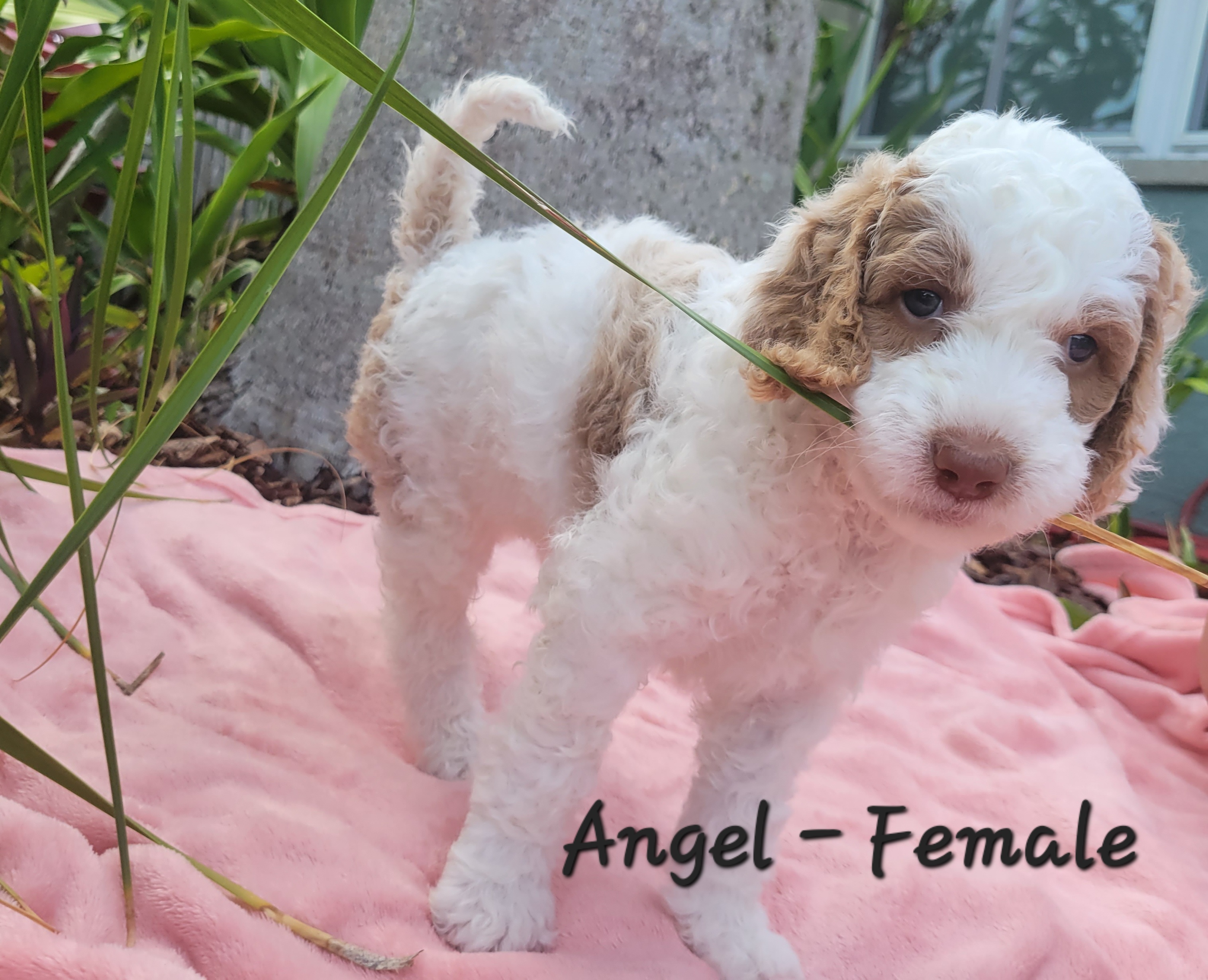 Our puppies include liver and white, parti, white, and apricot. Colors will vary depending on the parent dogs.