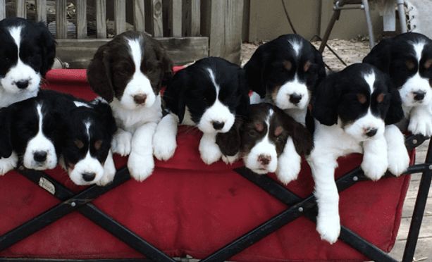 Our puppies include liver and white, black and white, liver white and tan, and black white and tan. Colors will vary depending on the parent dogs.