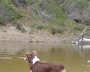 I'm Emily M., the breeder behind Springville Aussies located in Fortuna, CA. Australian Shepherds make great companions, enjoying a long day of work or a relaxing indoor day with their families -- the perfect combination. They are very smart and easy to train for work, service, and companionship. When they are under three years old, Aussies are high-energy dogs and need a good amount of mental and physical activity.