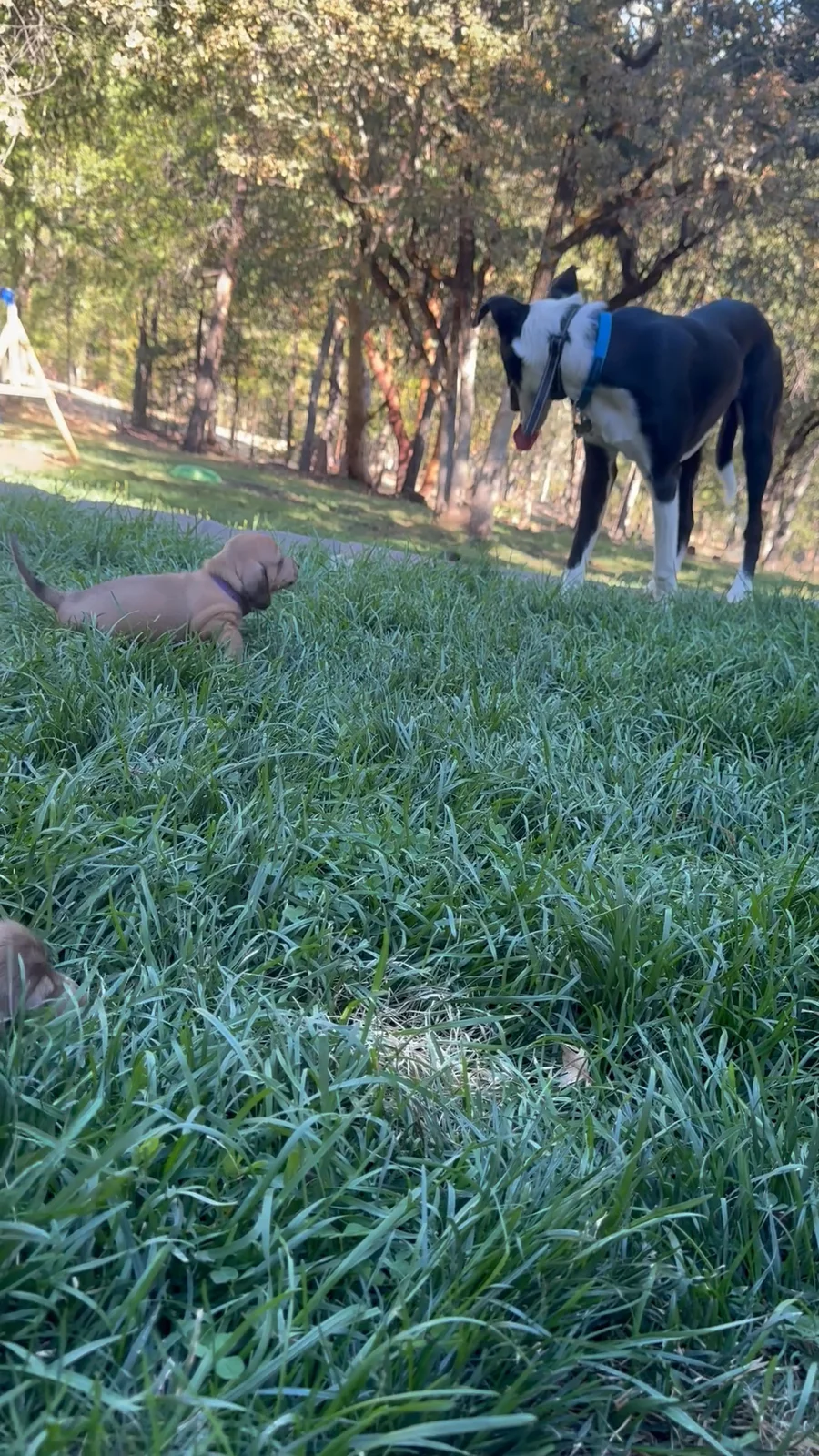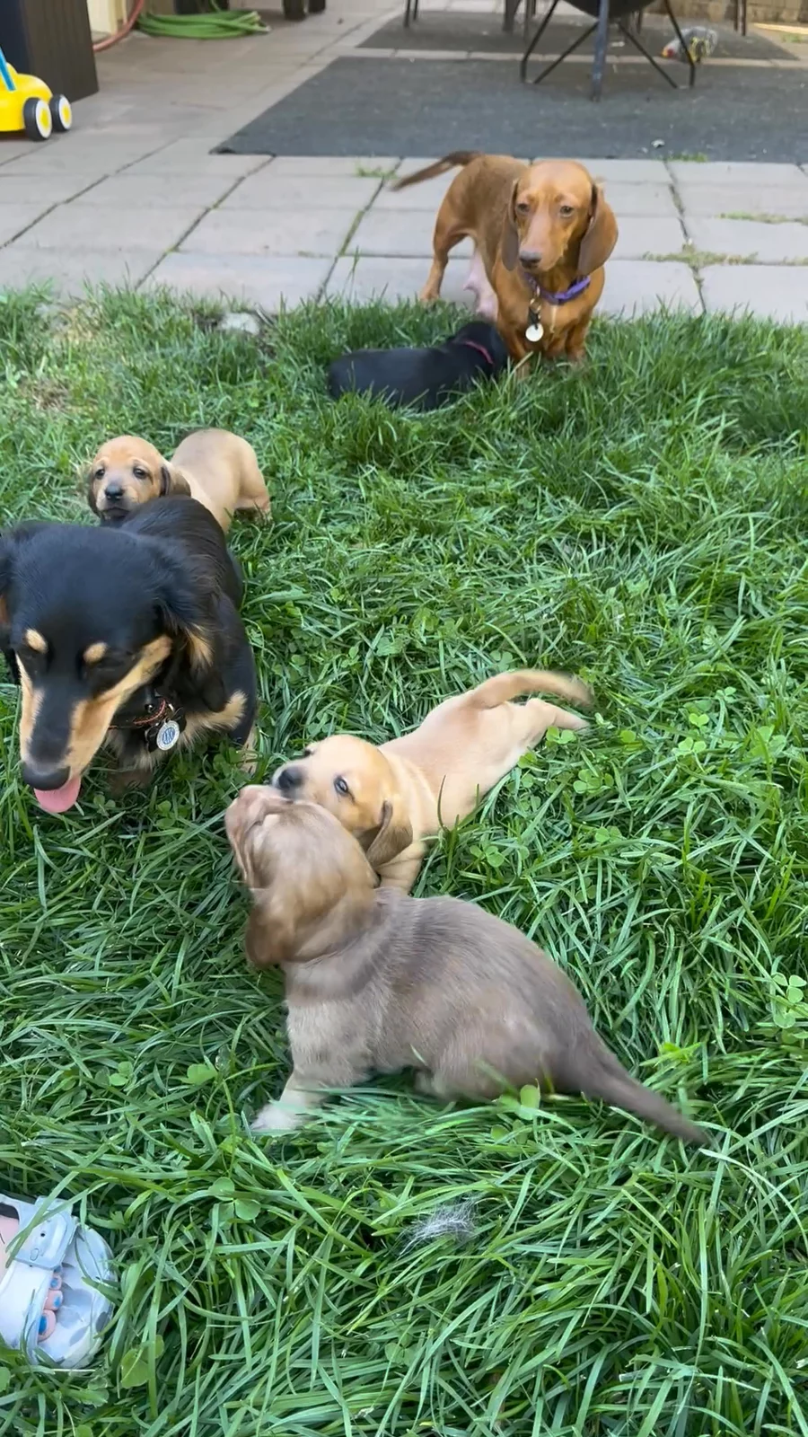 Babies loved playing outside today. The rain is finally gone so we are playing outside with the other animals and enjoying the sunshine. Miss rosie sure does love sunbathing while the pups eat ☀️☀️