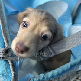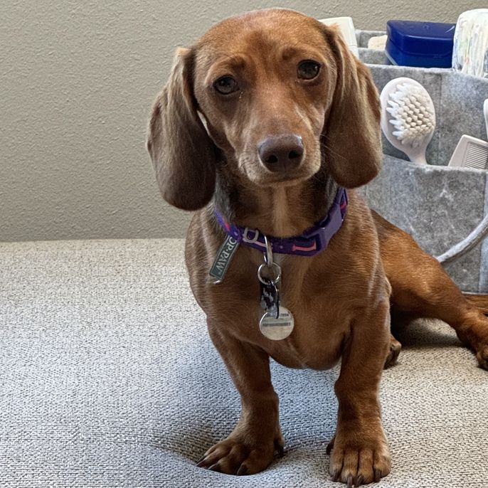 Sophia is a female Dachshund. Carefully selected as a great representative of her breed, Liz decided to make her part of their program. Liz has passed Good Dog’s screening process, which involved a review of their breeding practices, environment, and the mental and physical health of their dogs.