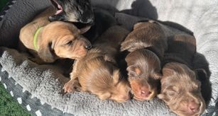 Our puppies include cream, red, chocolate, chocolate and tan, chocolate and cream, and black and cream. Colors will vary depending on the parent dogs.
