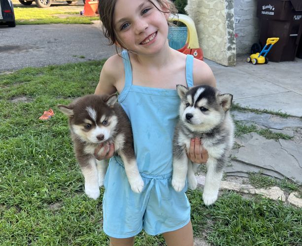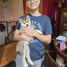 I had a wonderful experience working with Rebecca as my Pomsky breeder. From the very beginning, she was incredibly communicative - always quick to respond and happy to answer any questions I had. Her knowledge and passion for Pomskies really shine through, and she offered so many helpful tips that is making raising my puppy feel much less overwhelming.