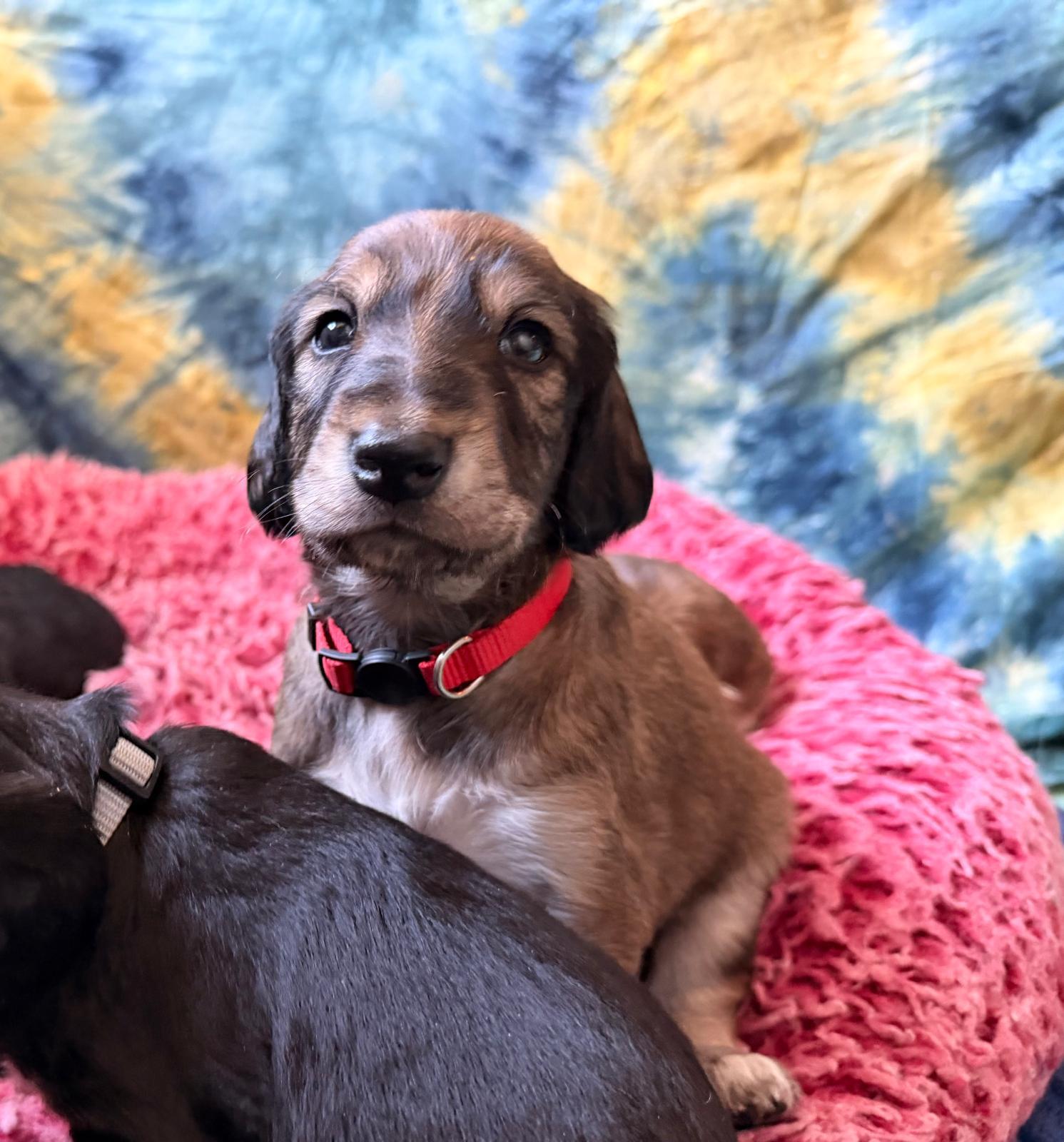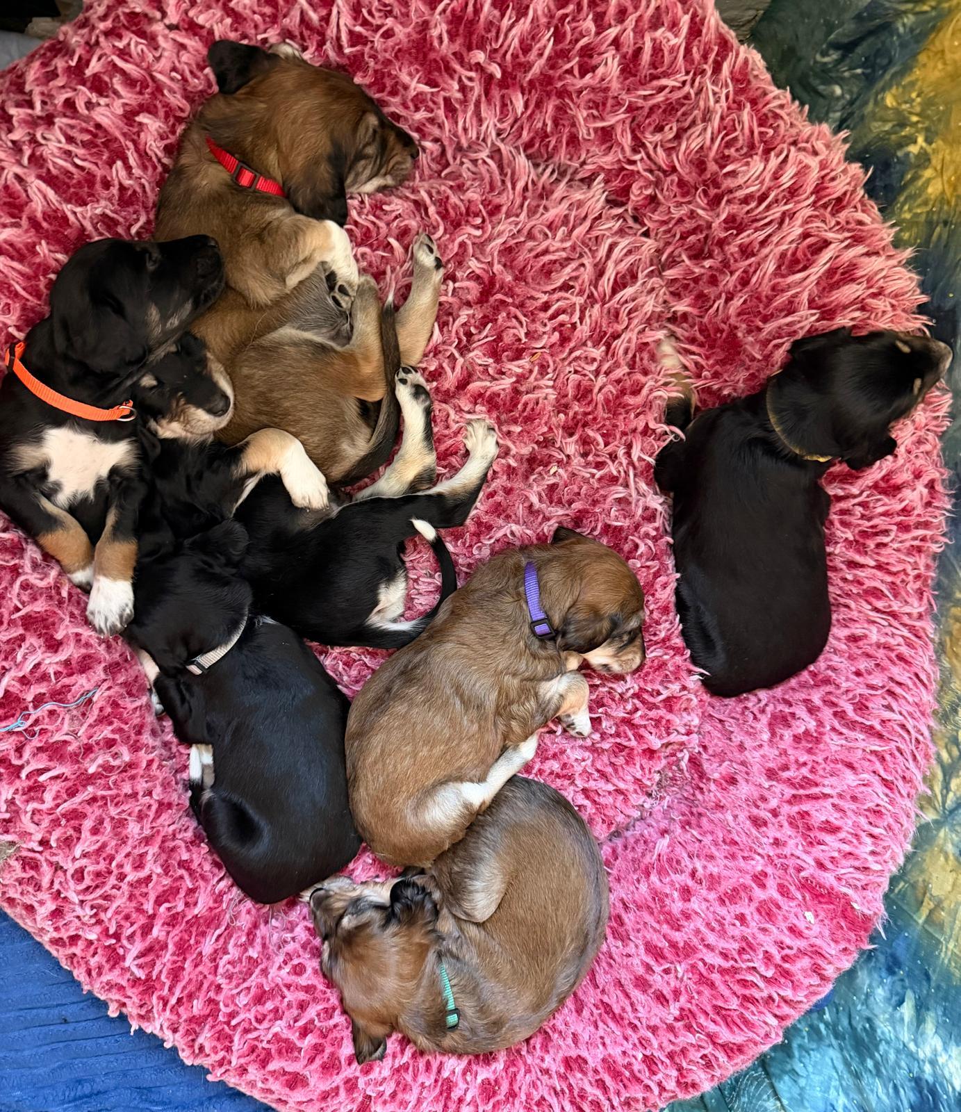 Our puppies include red, cream, black tan and white, black and tan, and black. Colors will vary depending on the parent dogs.