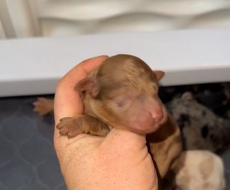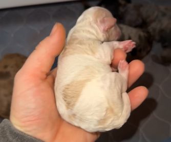Our puppies include cream, apricot, merle, and parti. Colors will vary depending on the parent dogs.