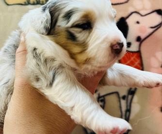 Emily, and SS Australian Shepherds, are a wonderful breeder to work with! She was very responsive to all of our questions and always happy to provide any information we wanted or needed. We brought home our new puppy (Mamie Eisenhower), now named Sadie via a 4-hour car ride, and she was calm the whole way home. It was amazing! Emily really cares about her puppies and takes the extra time to assure they are well-socialized, healthy and on the right track for when they find their forever home. We are very impressed with how brave our little puppy is and how adaptive she is to new situations and people. I would highly recommend this breeder for anyone looking for a sweet Aussiedoodle puppy!
