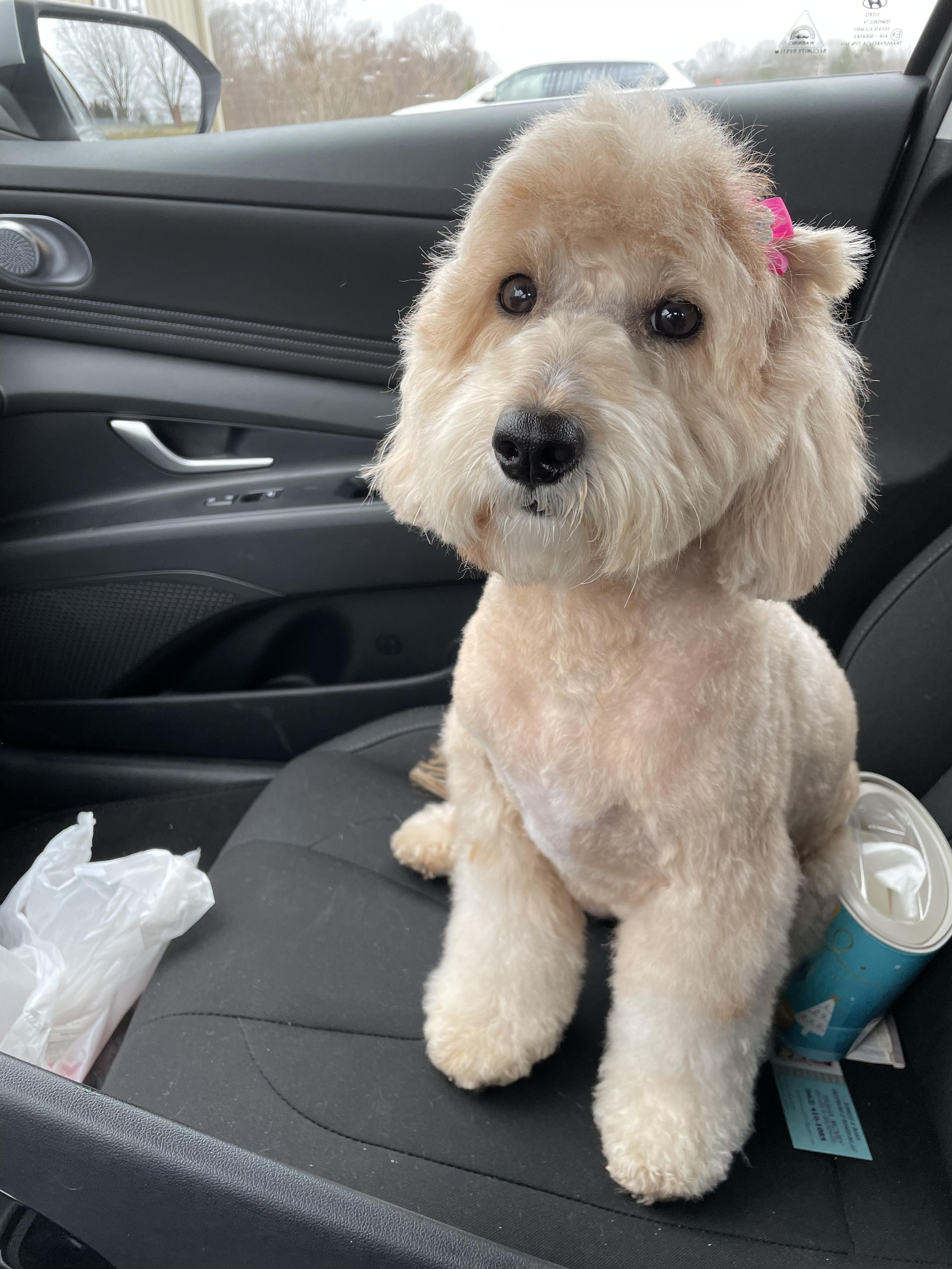Macy is a female Aussiedoodle. Carefully selected as a great representative of her breed, Stephanie decided to make her part of their program. Stephanie has passed Good Dog’s screening process, which involved a review of their breeding practices, environment, and the mental and physical health of their dogs.