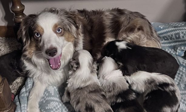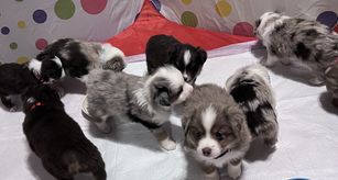 Our puppies include blue merle, red merle, red, and black. Colors will vary depending on the parent dogs.