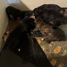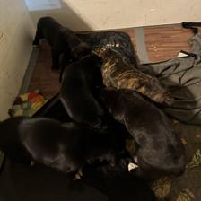 They are now eating soaked until it's soft puppy food! Guess Mommas milk has kept them to full to be interested in it until today.
