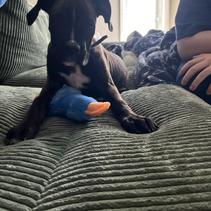 Sweetest boy ever, cuddle bug, lovey dovey good boy! Loves his family, barks to chase away boogy men. Loves to touch his Mom