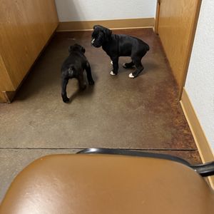 Today was our 6 week vet check appointment! We weighed between 8 pounds up to 11.5 pounds, everyone is starting a 5 days of pancur dewormer. They are all eating their Diamond Naturals for large breed puppies food, I do still soak it to soften it. Currently eating 6-8 times a day. Momma is still nursing them but she's always in a hurry to get out ( those teeth I bet).