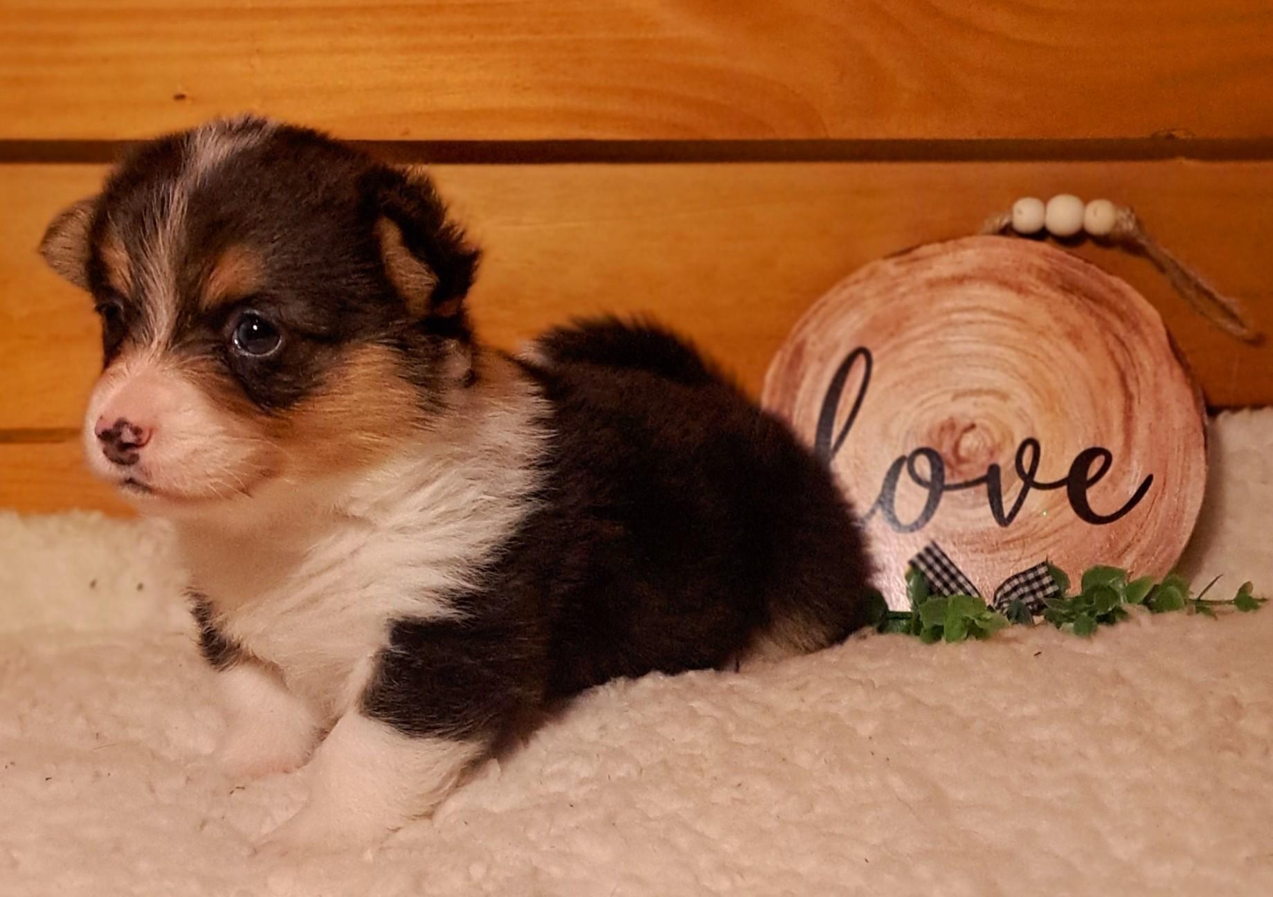 Our American Corgi puppies include sable and white, black and white, and black and tan. Pembroke Welsh Corgi puppies include sable, black and tan, and white and red. Colors will vary depending on the parent dogs.