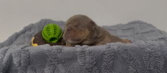 Sunny is the daughter of Mercedes who is build and muscle tone just like her mama. She stands just under 14inches tall and is a healthy 45 lbs -She is full suited blue fawn but with the right stud she can produce any color of the rainbow. She is heath tested and cleared! She was hand raised by me and is one of my BFFs! She turned 2 in March and has taken over the foundation of my program with her mamas retirement in 2023.