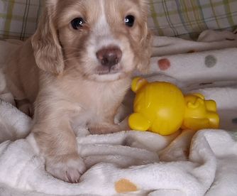 Cream long hair, hidden dapple, so all pups could also be dapple. Exceptional temperament. 4 years old, seen regularly by our veterinarians for check up and vaccinations.