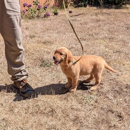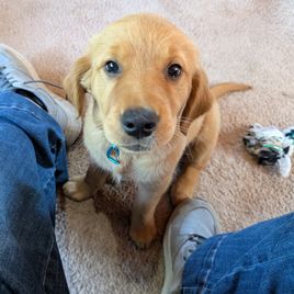 Tamsen is wonderful to work with. We drive to Oregon from Nevada and she made picking up our pup convenient and fun. Little Flo has settled right in with our family. She has had no accidents in the house and she took herself outside without prompts this morning. Tamsen recommended this pup as she is curious, calm and confident, I know she will grow to be a great dog and lovely close friend. The take home bag with a blanket that smelled like Mom and appropriate chew toys is very appreciated. She sleeps through the night in her bed and did not whine more than a few seconds in her kennel. Dream Pup!