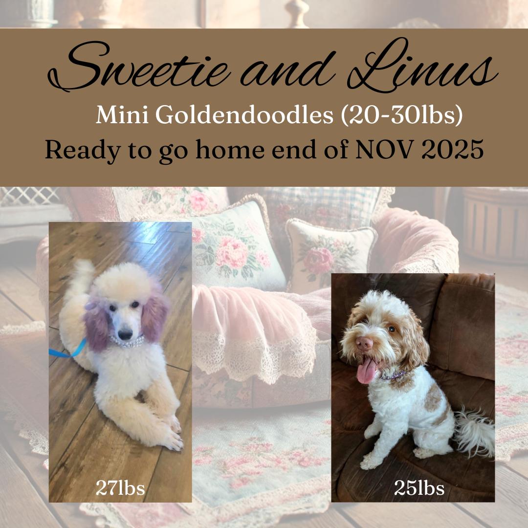 Our puppies include miniature and medium sizes. Sizes will vary depending on the parent dogs.