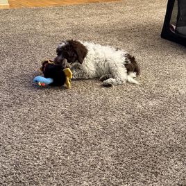 We are so happy with our puppy Mac from Stacy's PWD Portuguese Water Dogs litter from February, 2024. Stacy was a pleasure to work with. She gave frequent updates from before their birth and throughout their first 8 weeks until we picked him up. She was available for any questions after we brought him home and is kind to check in on us. Stacy was prompt and clear with all her communications and very transparent with the whole process. Her frequent Facebook updates were a pleasure. It was so great following the puppies' progress through their first 8 weeks and to learn what she was doing to expose them to noises, introducing them to solid foods, stairs, etc. We brought home such a well rounded pup! He's been a pleasure to add to our family and we are so happy we chose to get a puppy from Stacy!