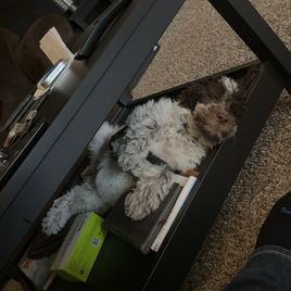 I'm Stacy L., the breeder behind Stacy's PWD Portuguese Water Dogs located in Des Moines, IA. Stacy's Portuguese Water Dogs are raised in a healthy home environment and are kept busy with activities like going to the dog park, swimming, scent work training, obedience training, and playing fetch. Our dogs are happiest when they are learning or cuddling.