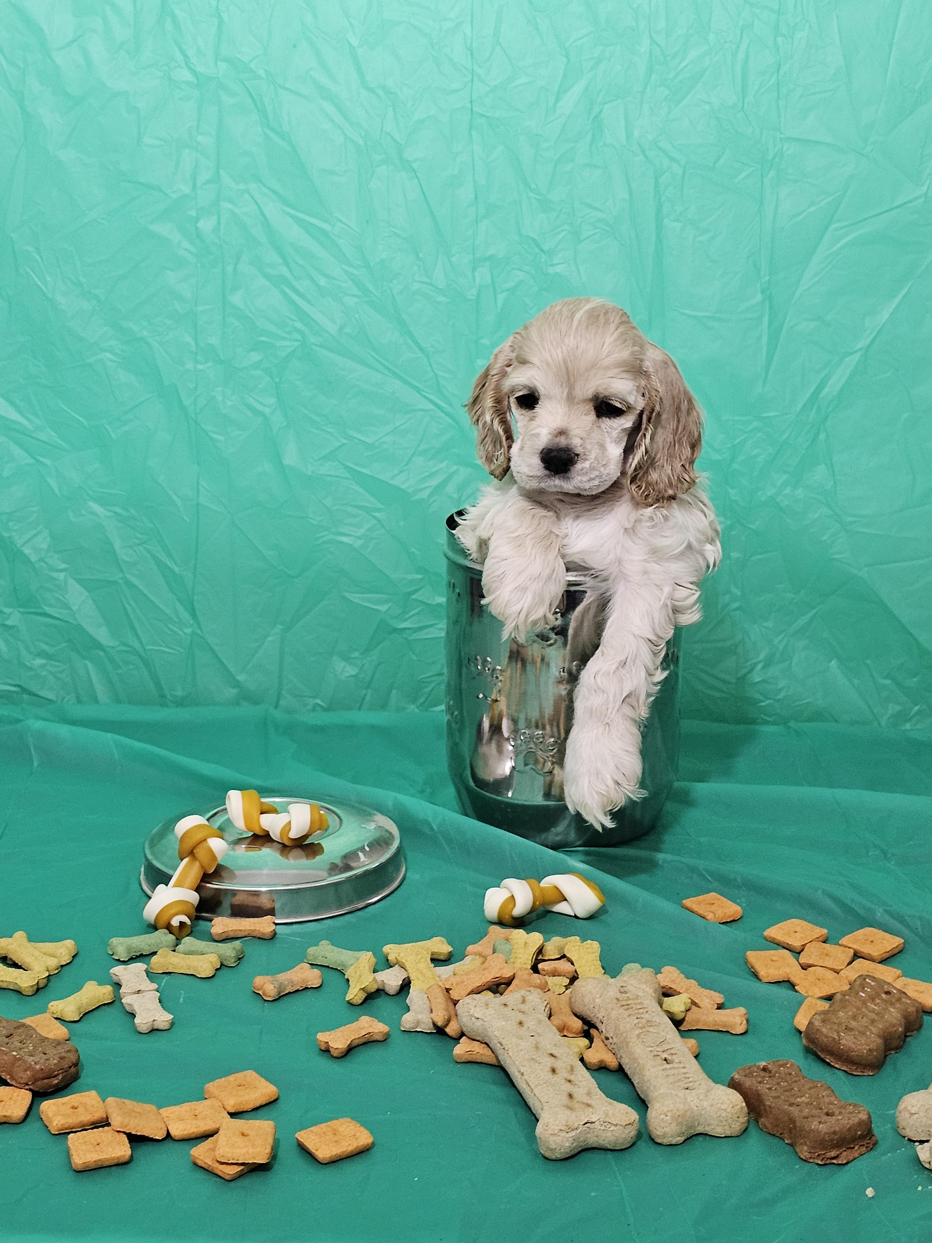 Stand Alone's Shake it Like This "Cinnabon" is a female Cocker Spaniel. Carefully selected as a great representative of her breed, Heather decided to make her part of their program. Heather has passed Good Dog’s screening process, which involved a review of their breeding practices, environment, and the mental and physical health of their dogs.