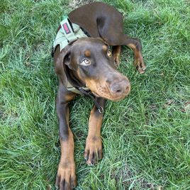 Thanos is a male Doberman Pinscher. Carefully selected as a great representative of his breed, Jaime & Nichole decided to make him part of their program. Jaime & Nichole has passed Good Dog’s screening process, which involved a review of their breeding practices, environment, and the mental and physical health of their dogs.