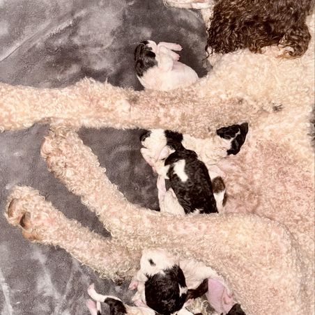 We raise all of our Poodles in our home & have plenty of open space for them to play and grow into amazing, healthy puppies. Our pups are born in our bedroom, raised in our living room, and begin potty training outside early. Due to our pups wonderful temperaments & health, we have several pups (and now dogs) who are trained Service Dogs, Emotional Support Animals & Therapy Dogs.