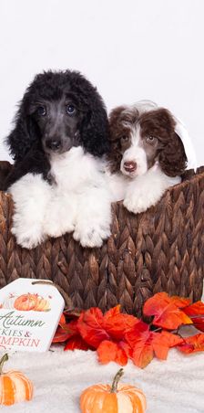 Our puppies include sable, apricot, black, blue, brown, cafe au lait, cream, gray, silver, and parti. Colors will vary depending on the parent dogs.
