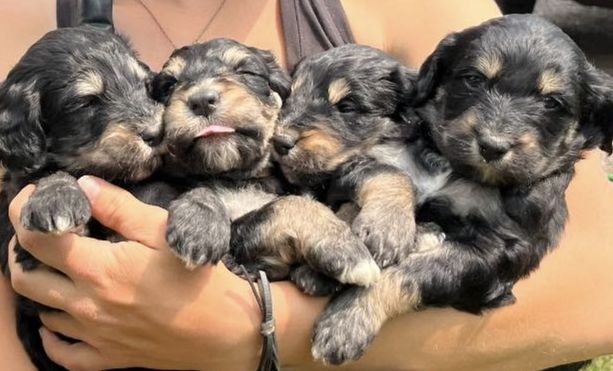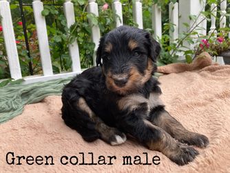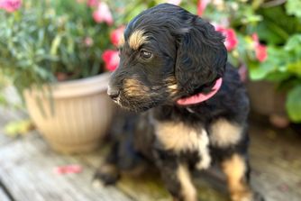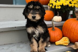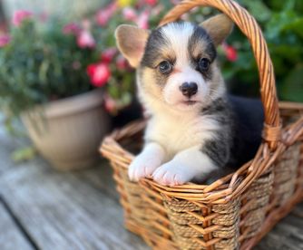 Our Pembroke Welsh Corgi puppies include fawn, red, sable, black and tan, and white and black. Bernedoodle puppies include black, black and white, and tri-color. Colors will vary depending on the parent dogs.