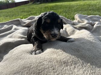Bernedoodle puppies are standard size. Sizes will vary depending on the parent dogs.