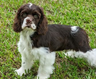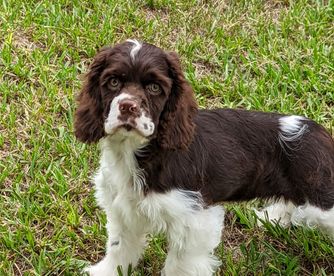 Our Cocker Spaniel puppies are brown and white. Colors will vary depending on the parent dogs.