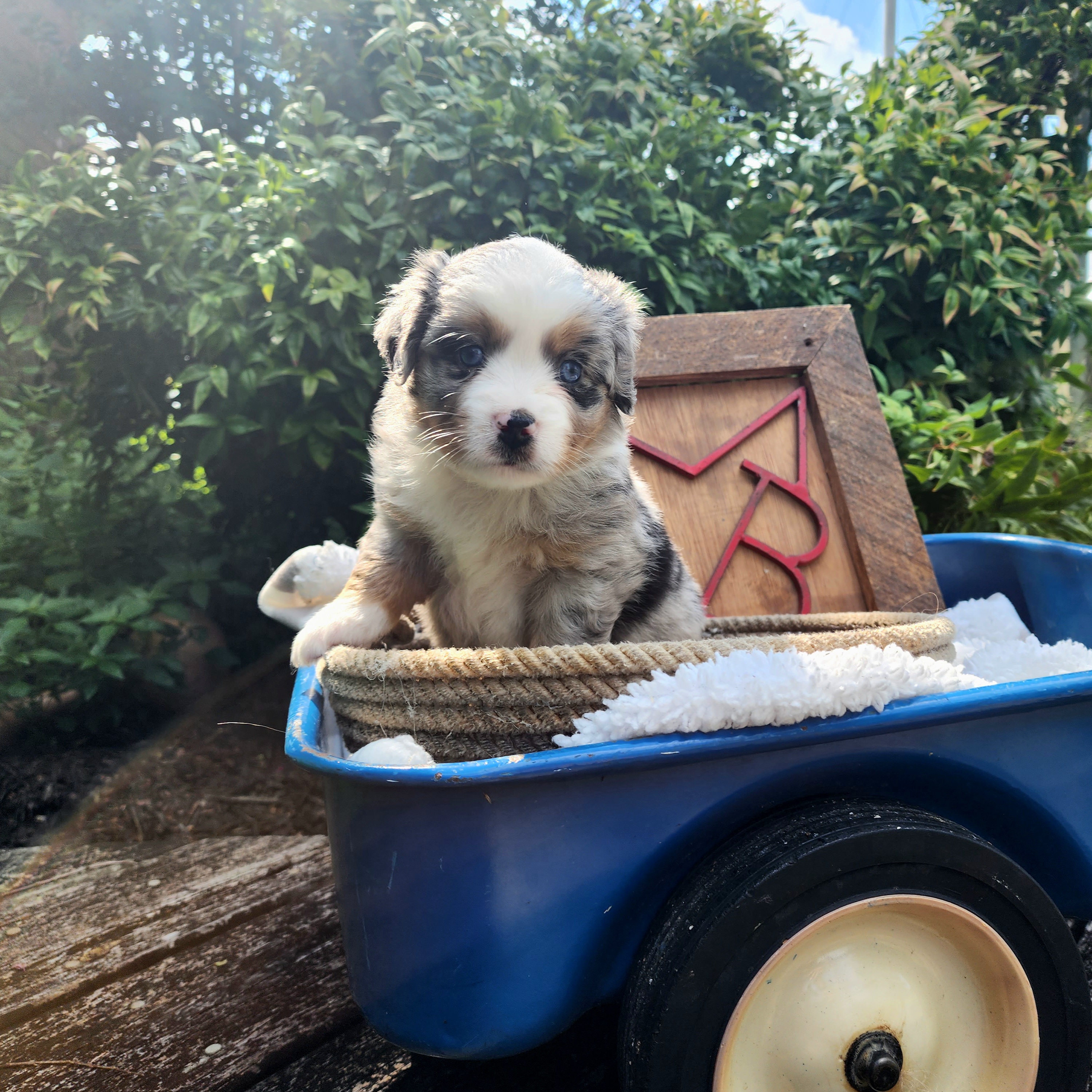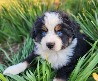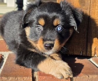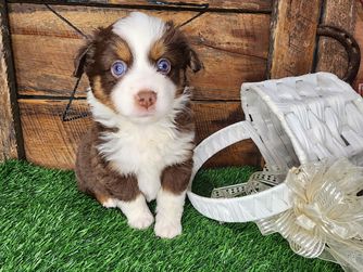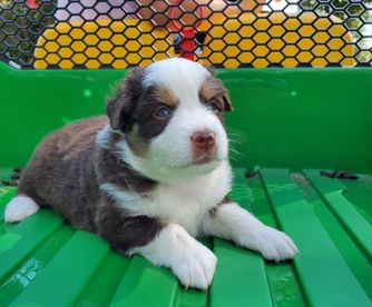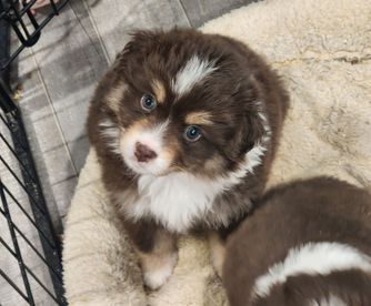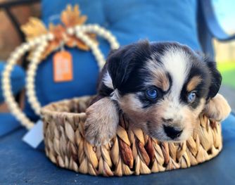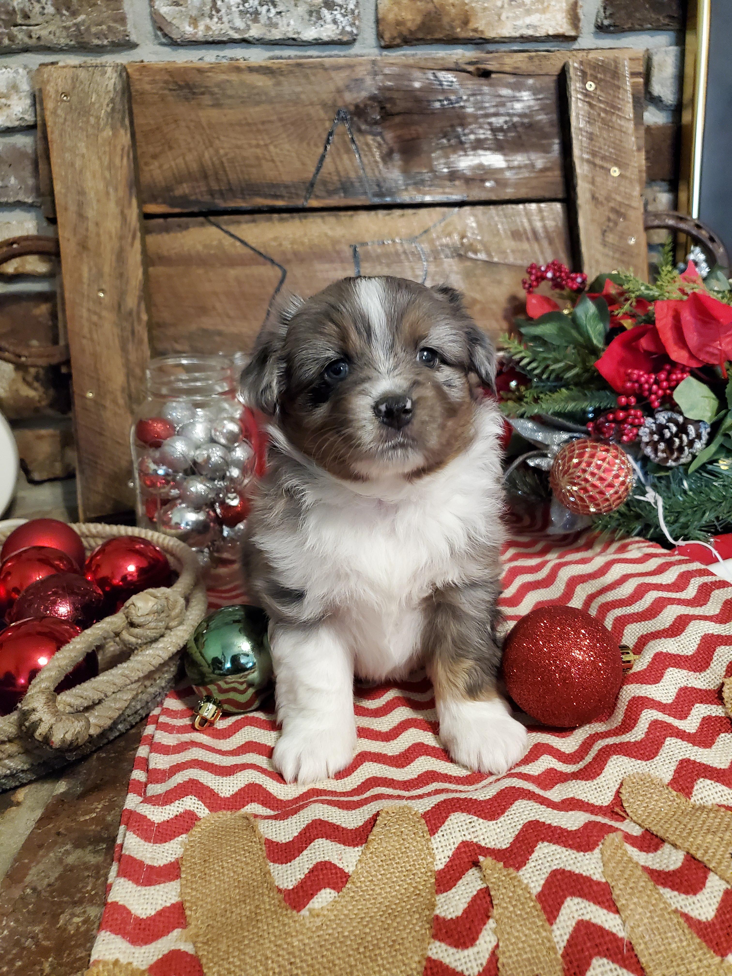 Our puppies include blue merle, black tri, red tri, and red merle. Colors will vary depending on the parent dogs.