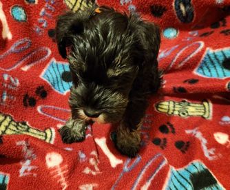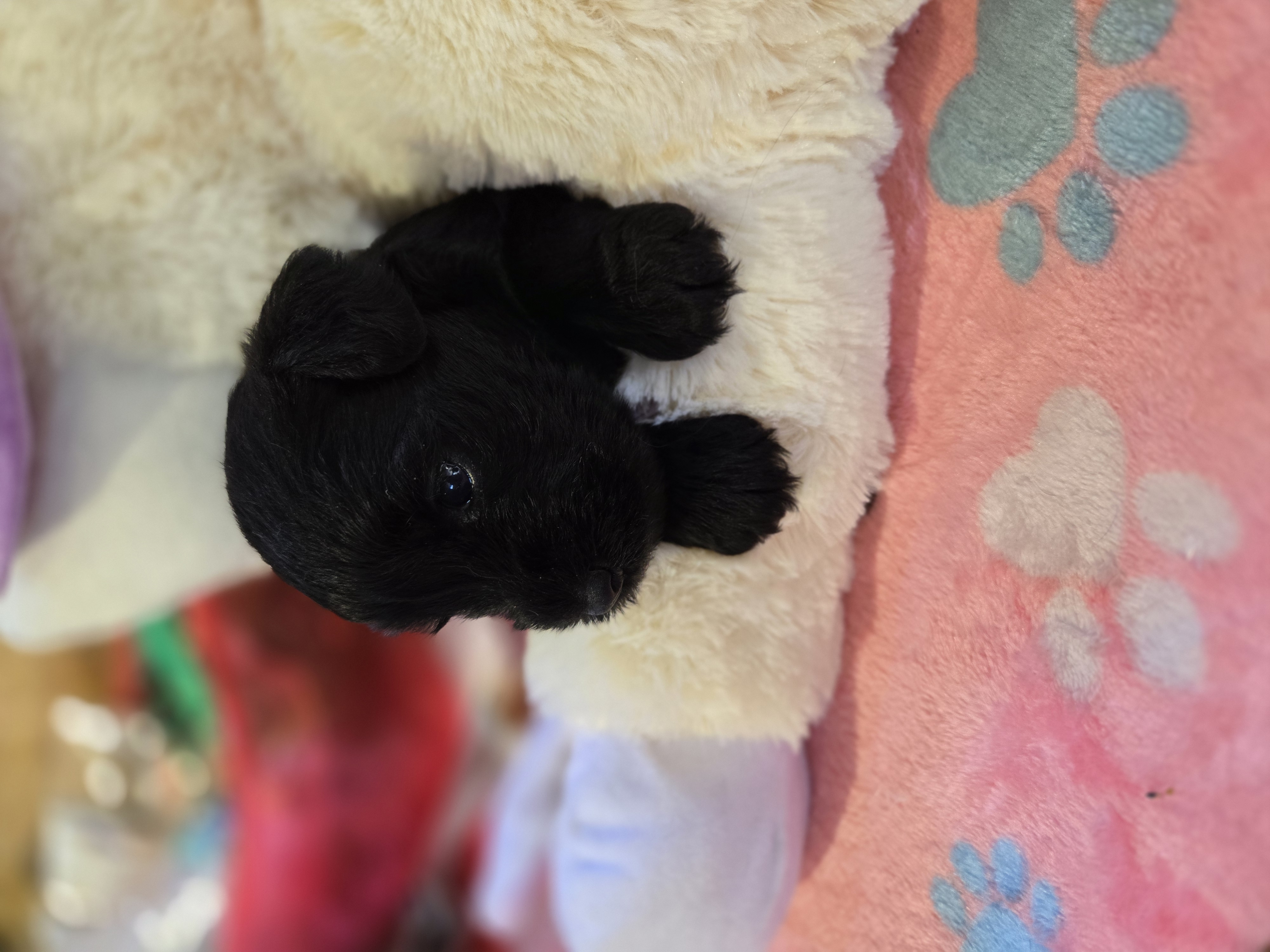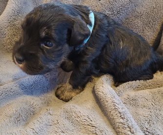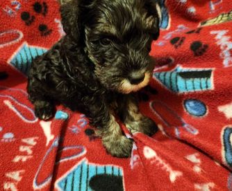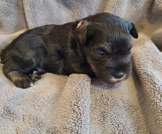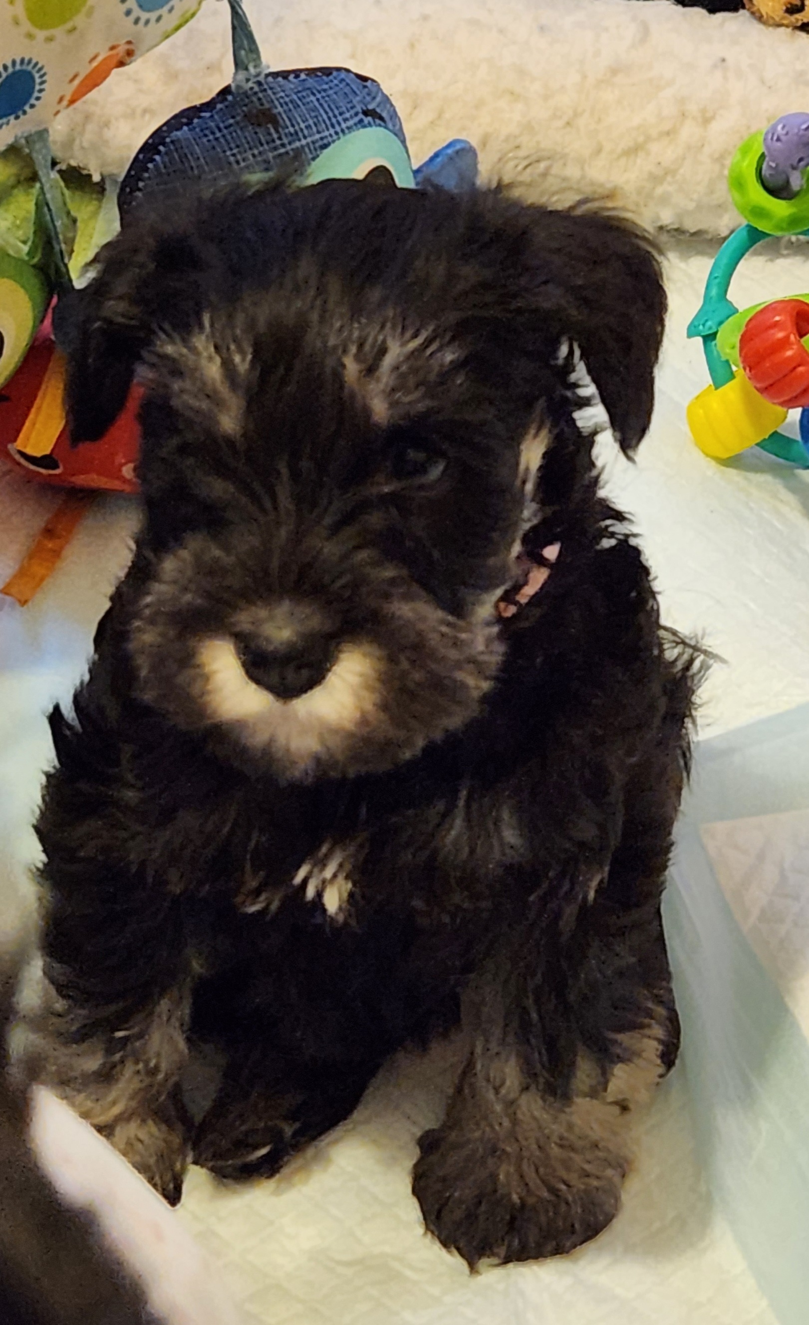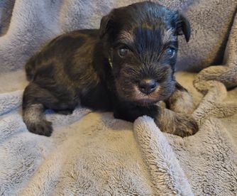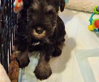 Our puppies include black, black and silver, and salt and pepper. Colors will vary depending on the parent dogs.