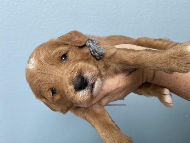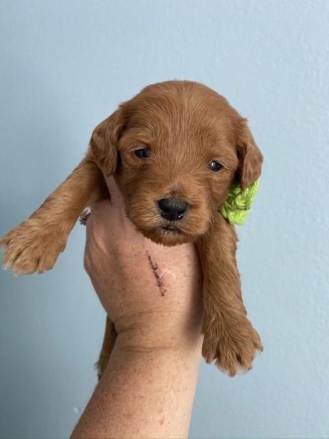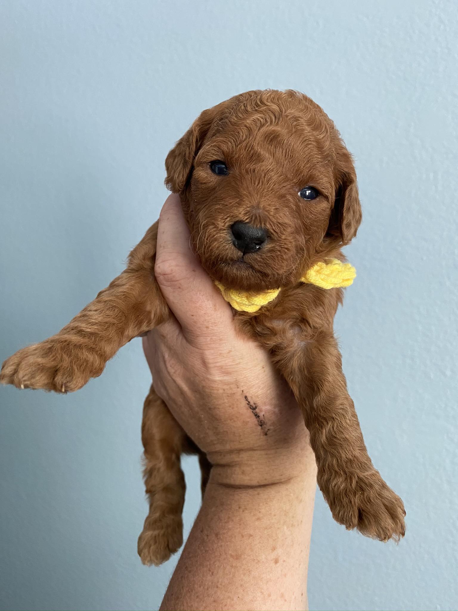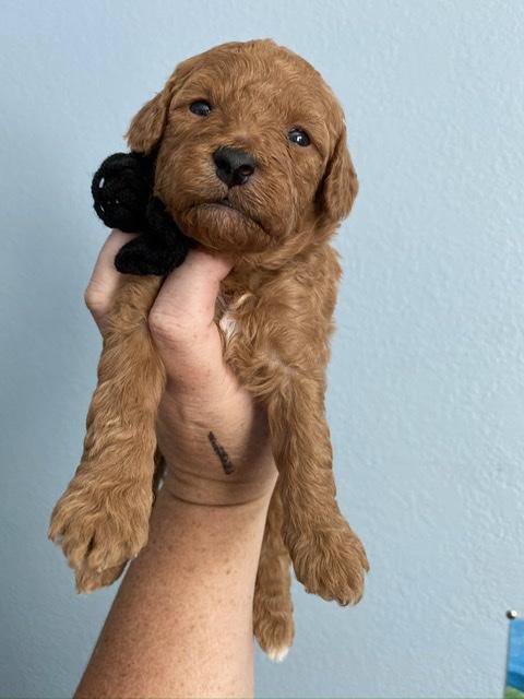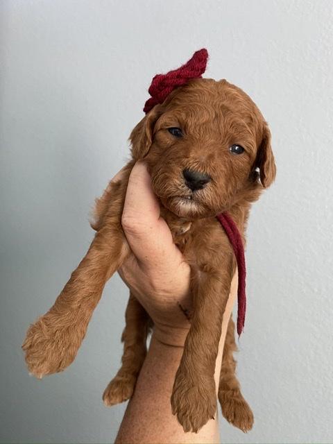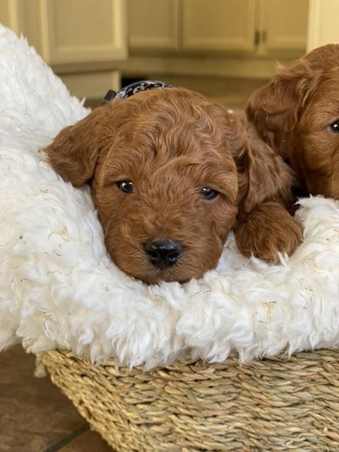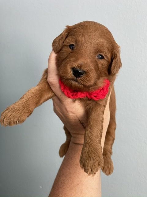 Goldendoodle puppies are red. Colors will vary depending on the parent dogs.