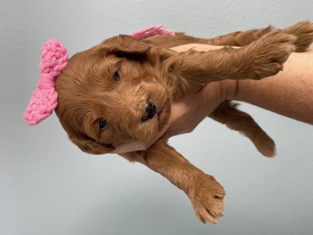 Our Cavapoo puppies are miniature size. Goldendoodle puppies include petite and miniature sizes. Sizes will vary depending on the parent dogs.