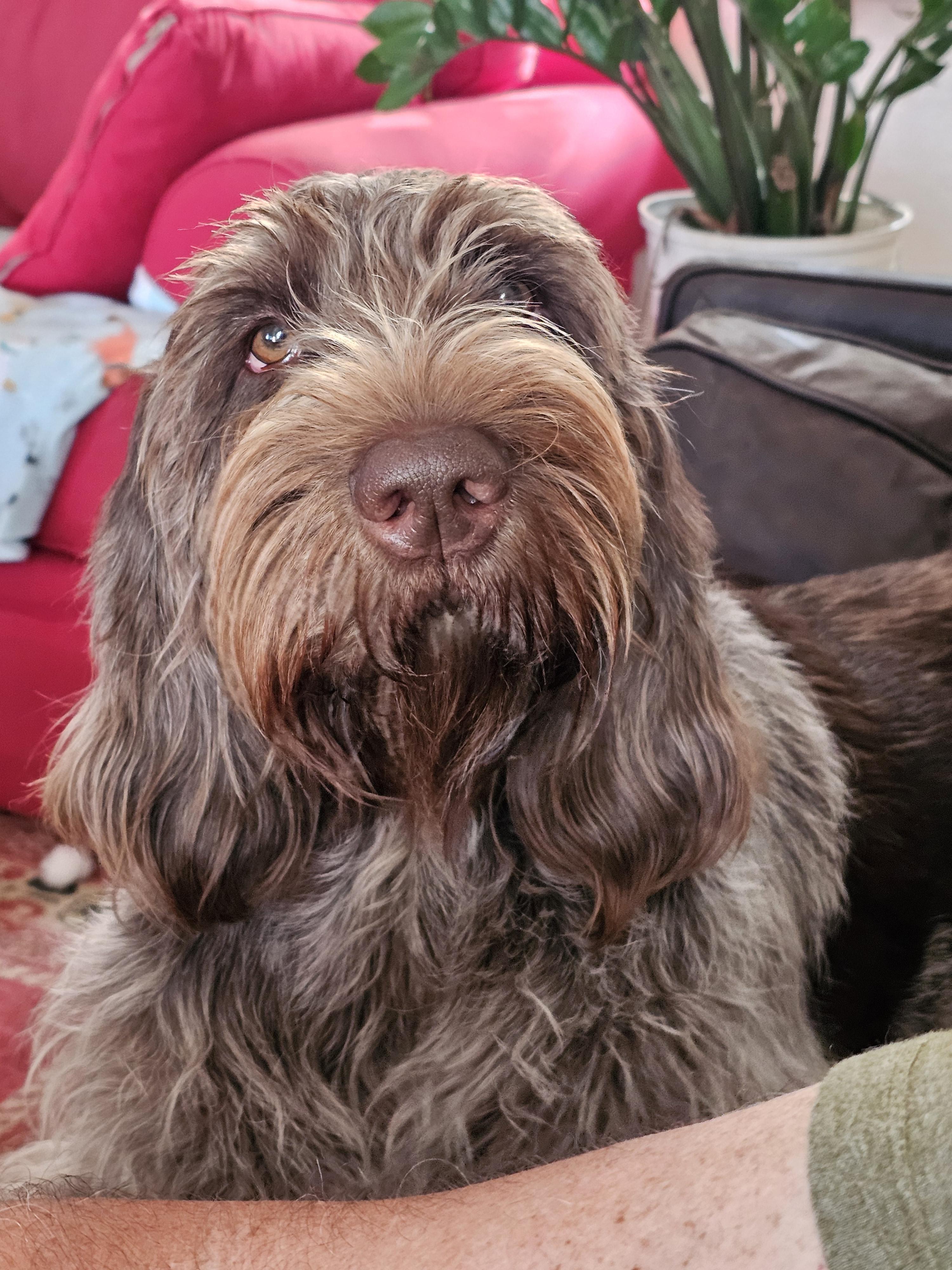 Luna is a female Spinone Italiano. Carefully selected as a great representative of her breed, Julia decided to make her part of their program. Julia has passed Good Dog’s screening process, which involved a review of their breeding practices, environment, and the mental and physical health of their dogs.
