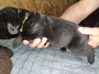 Our puppies include black, brown, and gray. Colors will vary depending on the parent dogs.