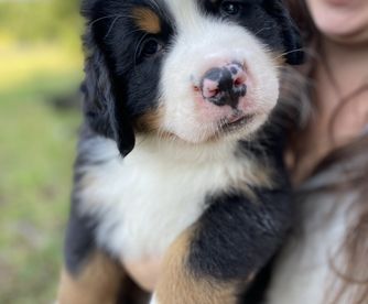 I'm Bonita A., the breeder behind Stargirl Bernese Mountain Dogs located in Fountain, NC. I am a veterinarian and have owned Bernese mountain dogs for 32 years! I have imported most of my dogs from outstanding European kennels and I focus on producing healthy long-lived dogs with excellent temperaments. I health tests all my dogs and do temperament testing on puppies to help families choose the perfect dog for their family. I provide a health guarantee and life-long support. Visitors are welcome. All my dogs live in my house, and are never rehomed. Puppies are raised in my bedroom and have extensive socializing. Many of my puppies have become service dogs as they are quite intelligent and eager to please.