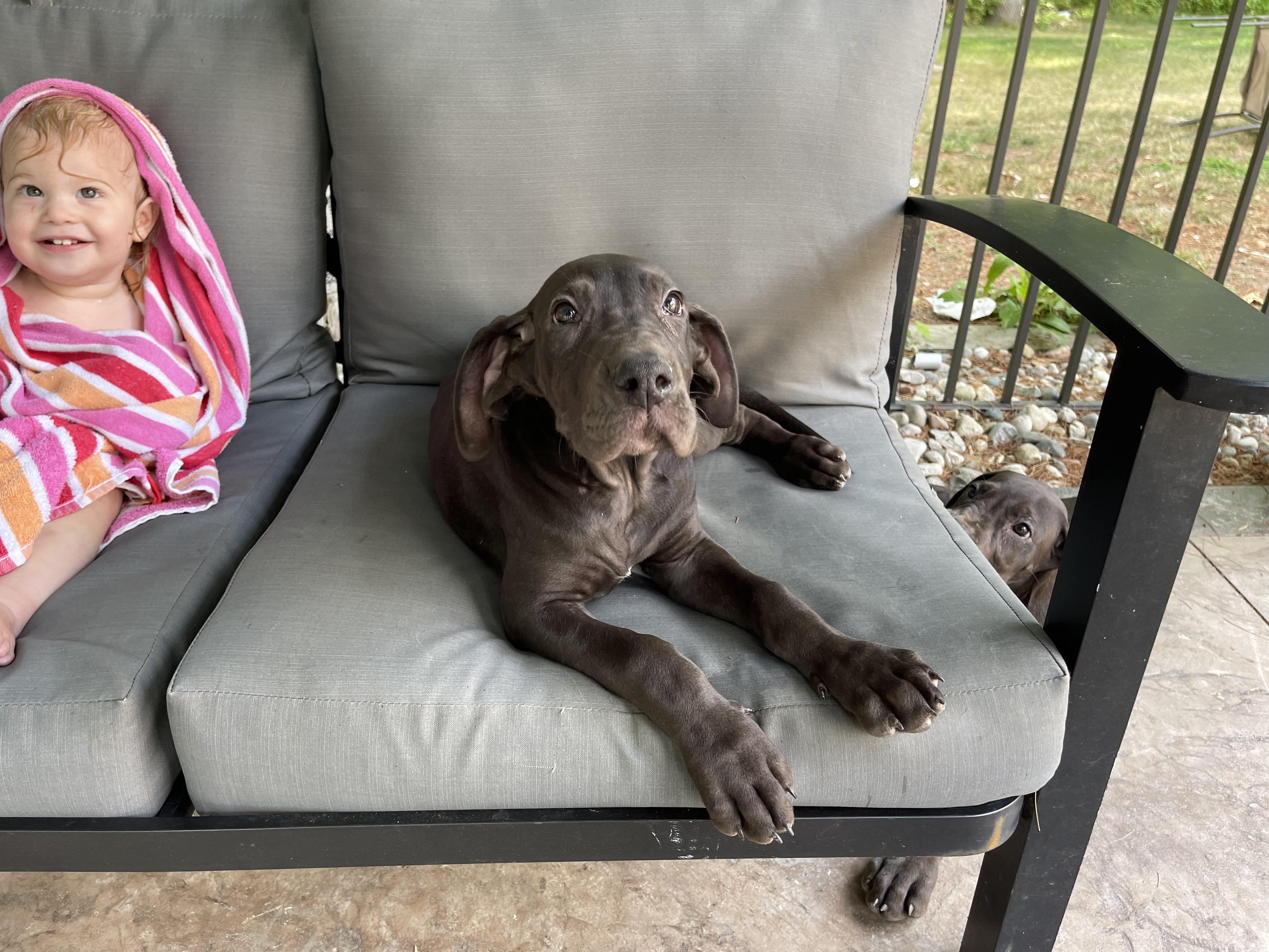 Starlight Danes was fantastic. Corinne answered all of my questions and was patient and kind throughout the process. We had a little hiccup during the first few days while we tried to adjust to each other. Corinne calmed my anxieties and reassured me that Hudson was the right choice for our family. Hudson is beautiful and healthy. He arrived vaccinated and microchipped. I’m so happy we chose Starlight Danes.