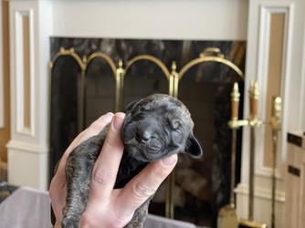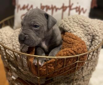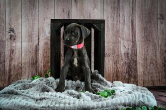 Our puppies include brindle, fawn, blue, harlequin, mantle, merle, and black. Colors will vary depending on the parent dogs.