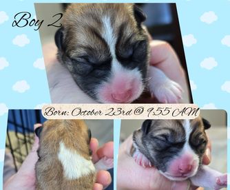 Miss. Shear had her babys! ALL 4 WERE BOYS! We also got an unexpected color. Boy number 2 is what looks to be a Red Pinto color. 2 sesames and a red. Mom is doing good and so are babys!