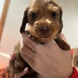 I'm so grateful to have found Starr Dashing Dachshunds via GoodDog. Laynee has been excellent with responses, information, and helping provide transport solutions that were mutually beneficial for everyone, including our new pup. The Adoption went off without any issues, and we're so happy with our beautiful puppy, "Peanut". Laynee provided plenty of photo updates while Peanut was growing up and still with her litter. I would absolutely recommend this breeder. We are delighted.