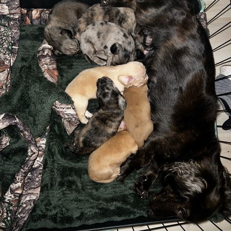 Our puppies include piebald, brindle, black and tan, and dapple. Colors will vary depending on the parent dogs.