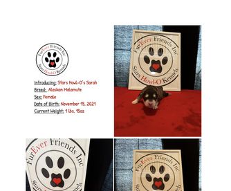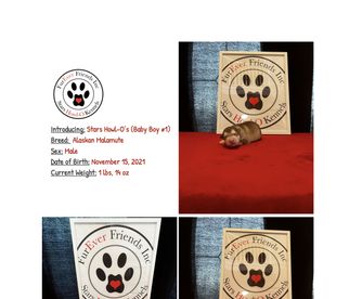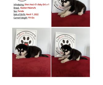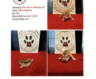 Stars Howl-O Kennels by FurEver Friends Inc reports to performing the health tests below on their breeding dogs. Ask your breeder about the tests performed on the parents of your litter. Learn more about health testing for Alaskan Malamutes.