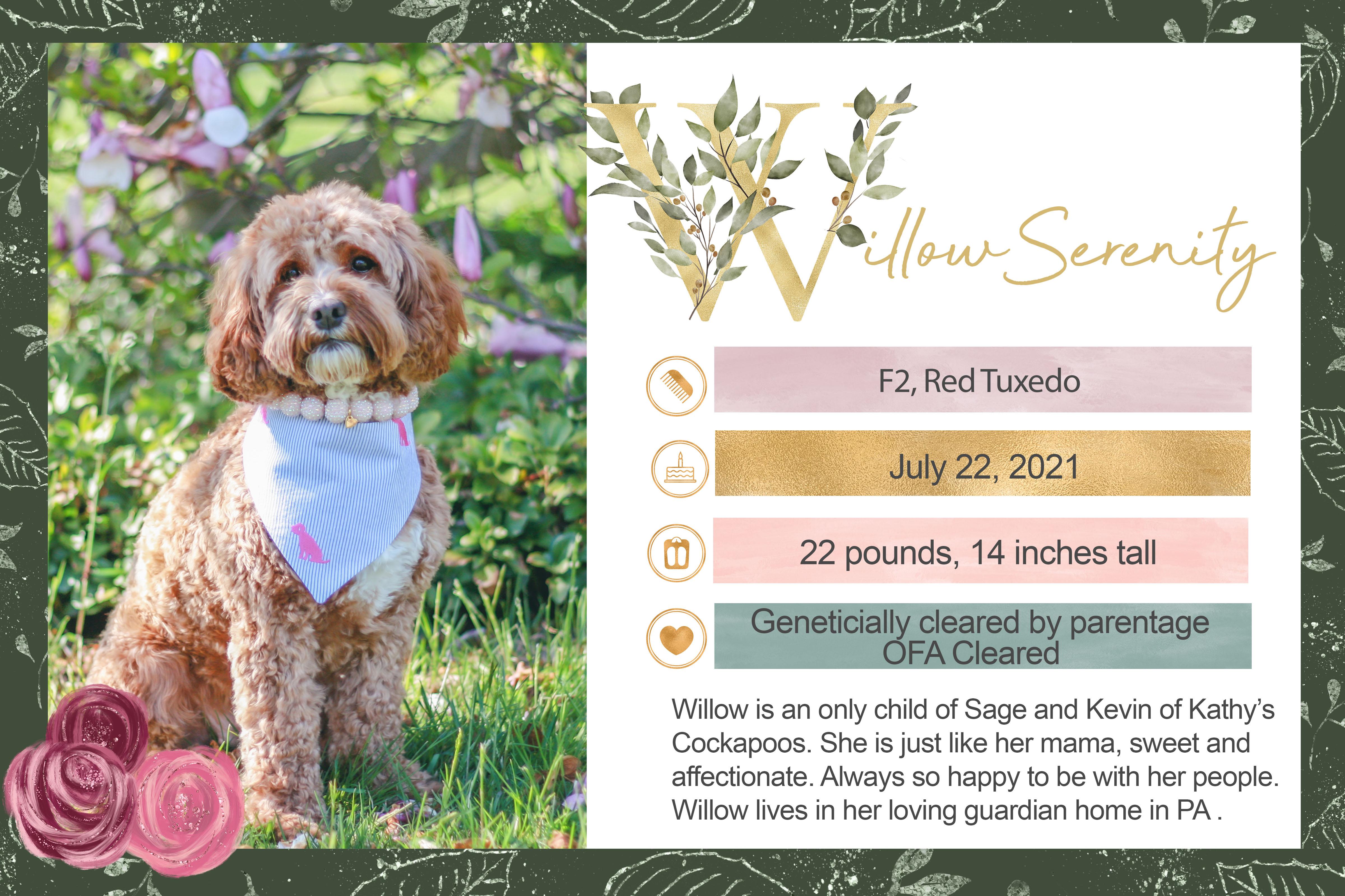 Stasia’s Cutiepoos reports to performing the health tests below on their breeding dogs. Ask your breeder about the tests performed on the parents of your litter. Learn more about health testing for Cockapoos.