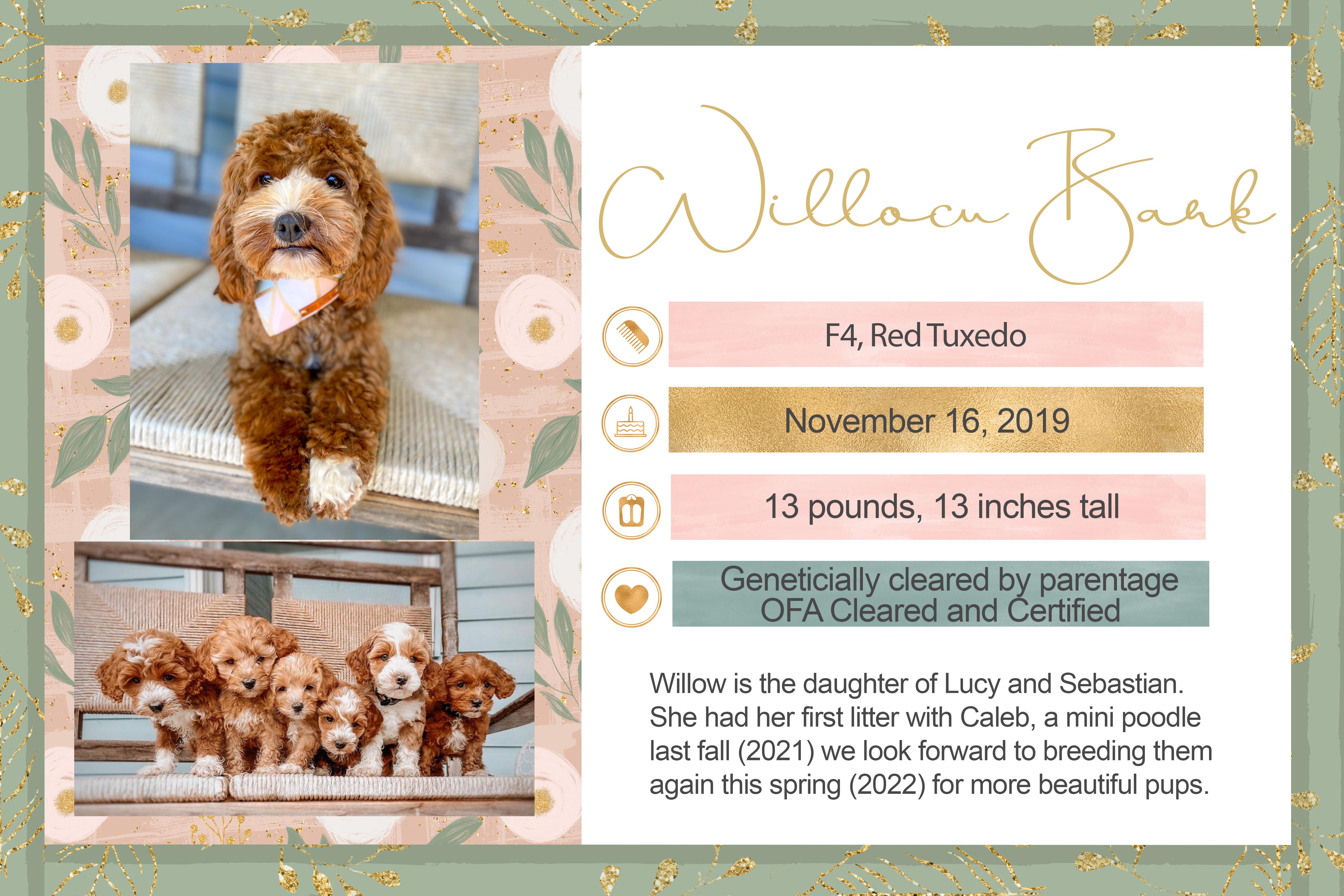 Our puppies include tiny and mini sizes. Sizes will vary depending on the parent dogs.