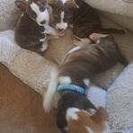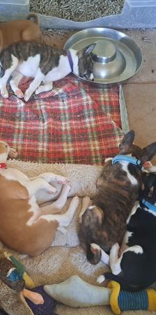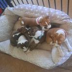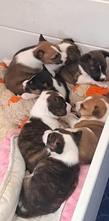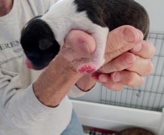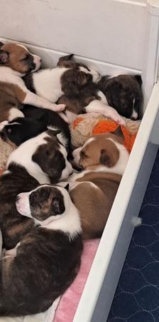 Our puppies include black and white, tri-color, red and white, and brindle and white. Colors will vary depending on the parent dogs.