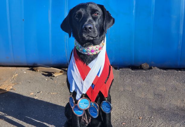 Omelette is a wonderful performance dog. She has multiple different dock diving titles. She also has her novice barn hunt title, her BCAT title in Fastcat, and has started with disc and hunt testing. She has a wonderful on/off switch and can be the biggest cuddle bug couch potato at home. She has several siblings and half siblings who also are trained service and therapy dogs.