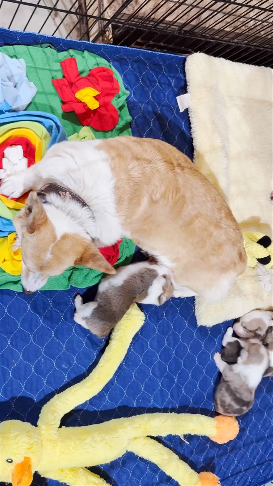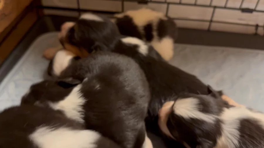 Dotties babies are 3 weeks old, eyes wide open, and beginning to toddle around! 🐾👀🥰
