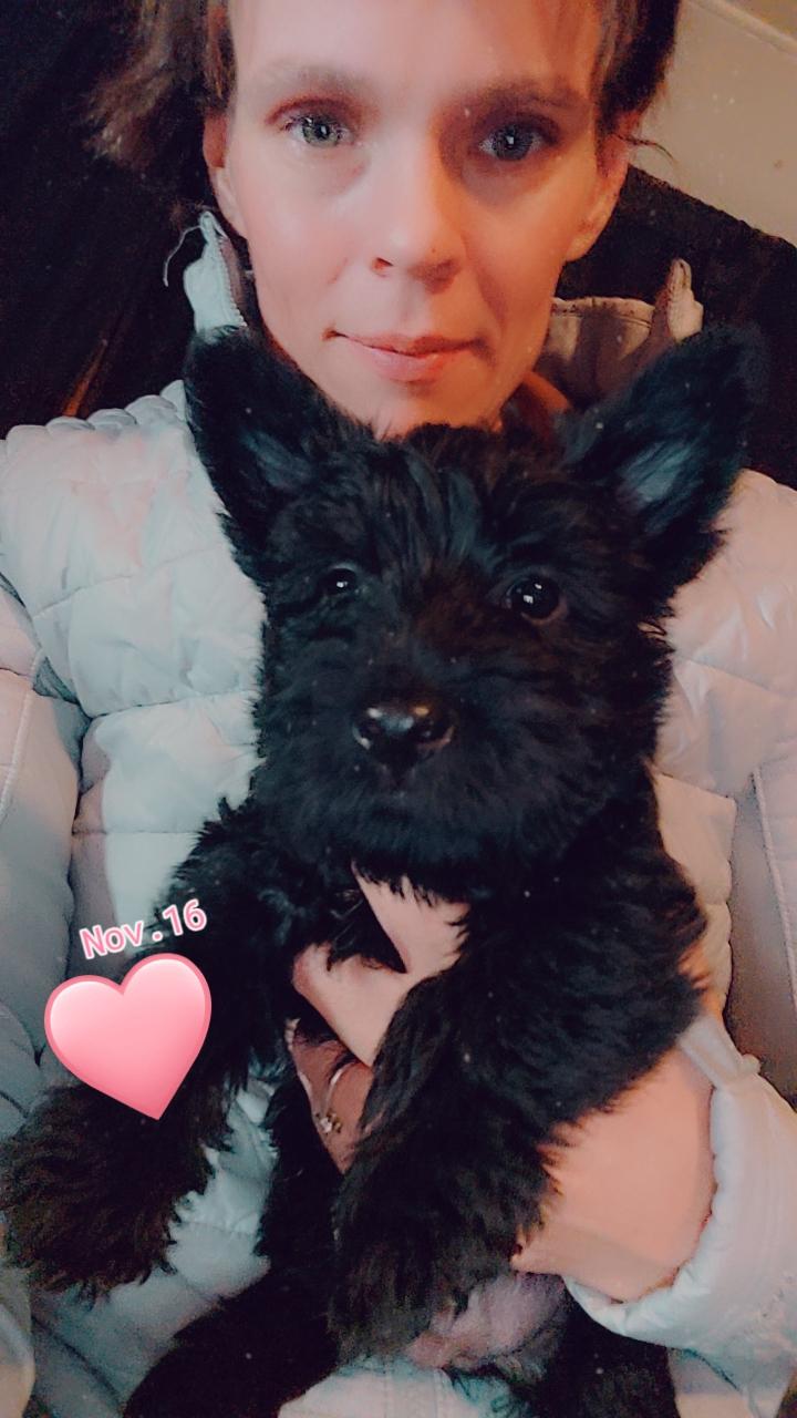 Stefany was excellent to work with from my deposit to delivery. Named my little female Abby. Excellent quality puppy. Good dog started house breaking which made my job so much easier. She's doing well in that area. I social my pup with family and friends , say how cut she is. Very happy with my decision to get another Scottie puppy after being without for few years.