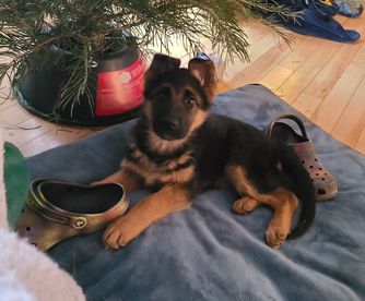 “Puppy price depends on age of puppy and training level completed. My puppies are always Veterinary health checked, on deworming schedule, have age appropriate vaccines, and microchipped. Puppies are raised in our living room Exposed to normal, everyday things. We do potty box training and weather permitting, outside time. German shepherds are 2200 AKC limited registration. Your deposit is your commitment to a puppy in the litter. Please provide information about your family as pertains to a pup.”